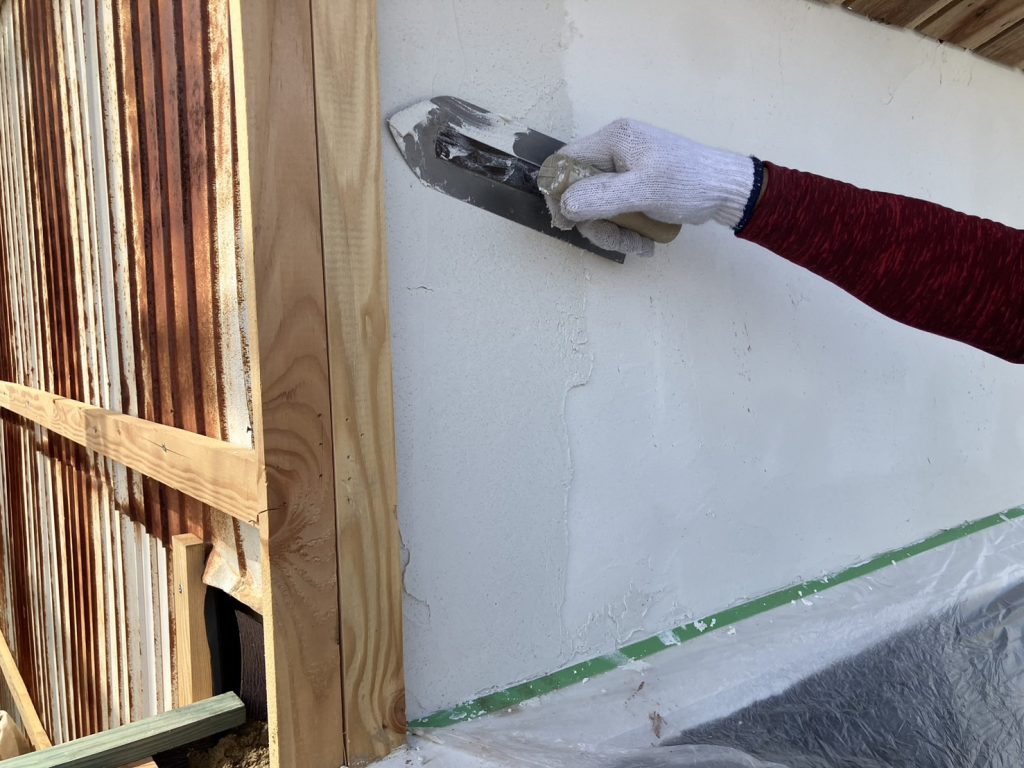 ↑ 下地処理後、漆喰の上塗りをしていきます。