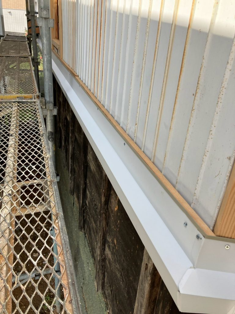 ↑ 土台部分に、水切を取付けたところです。